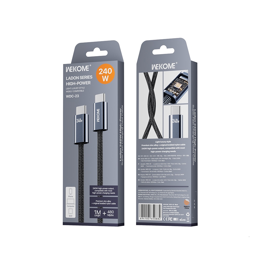 کابل شارژ سریع Type-c به Type-C مدل WDC 23