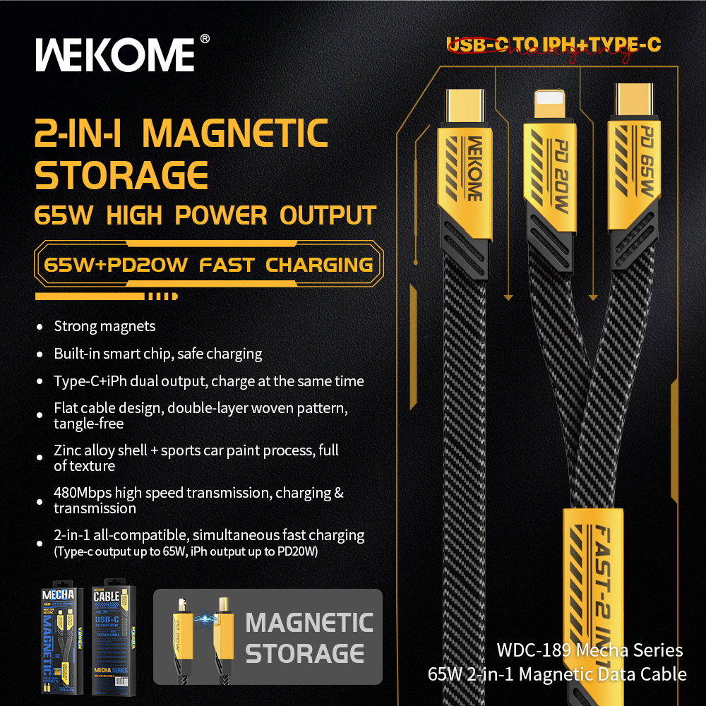 کابل شارژ مغناطیسی 2 در 1 مدل WDC 189، یک راه حل نوآورانه و کارآمد برای شارژ سریع و انتقال داده است. طراحی مغناطیسی این کابل به شما این امکان را میدهد که بهراحتی و بدون نیاز به پیچیدگی، دستگاههای خود را شارژ کنید. این کابل با دو سر مختلف، همزمان از دستگاههای مختلف پشتیبانی میکند و باعث میشود همیشه آماده برای شارژ باشید. روکش مقاوم و ساختار مستحکم آن، طول عمر بالایی را تضمین میکند، در حالی که طراحی شیک و جمعوجور آن، بهراحتی در جیب یا کیف شما جا میشود. این کابل به شما تجربهای سریع، راحت و بدون دردسر از شارژ و انتقال داده میدهد.