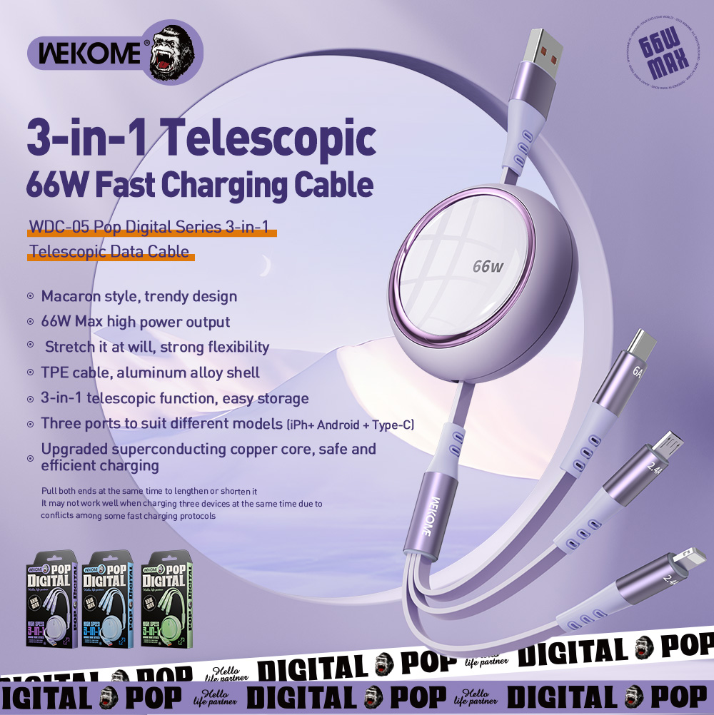 کابل فیتون 3 در 1 مدل WDC 05یک کابل کاربردی و چندمنظوره است که با داشتن سه کانکتور Type-C، Lightning و MicroUSB بهطور همزمان، امکان شارژ انواع دستگاهها را با یک کابل فراهم میکند. طراحی جمعوجور، روکش مقاوم و بدنهی مستحکم، این کابل را به گزینهای ایدهآل برای استفاده روزمره، سفر و محیط کار تبدیل کرده است. با پشتیبانی از شارژ سریع و کیفیت ساخت بالا، کابل WDC 05 انتخابی مناسب برای کاربران با دستگاههای متنوع است.